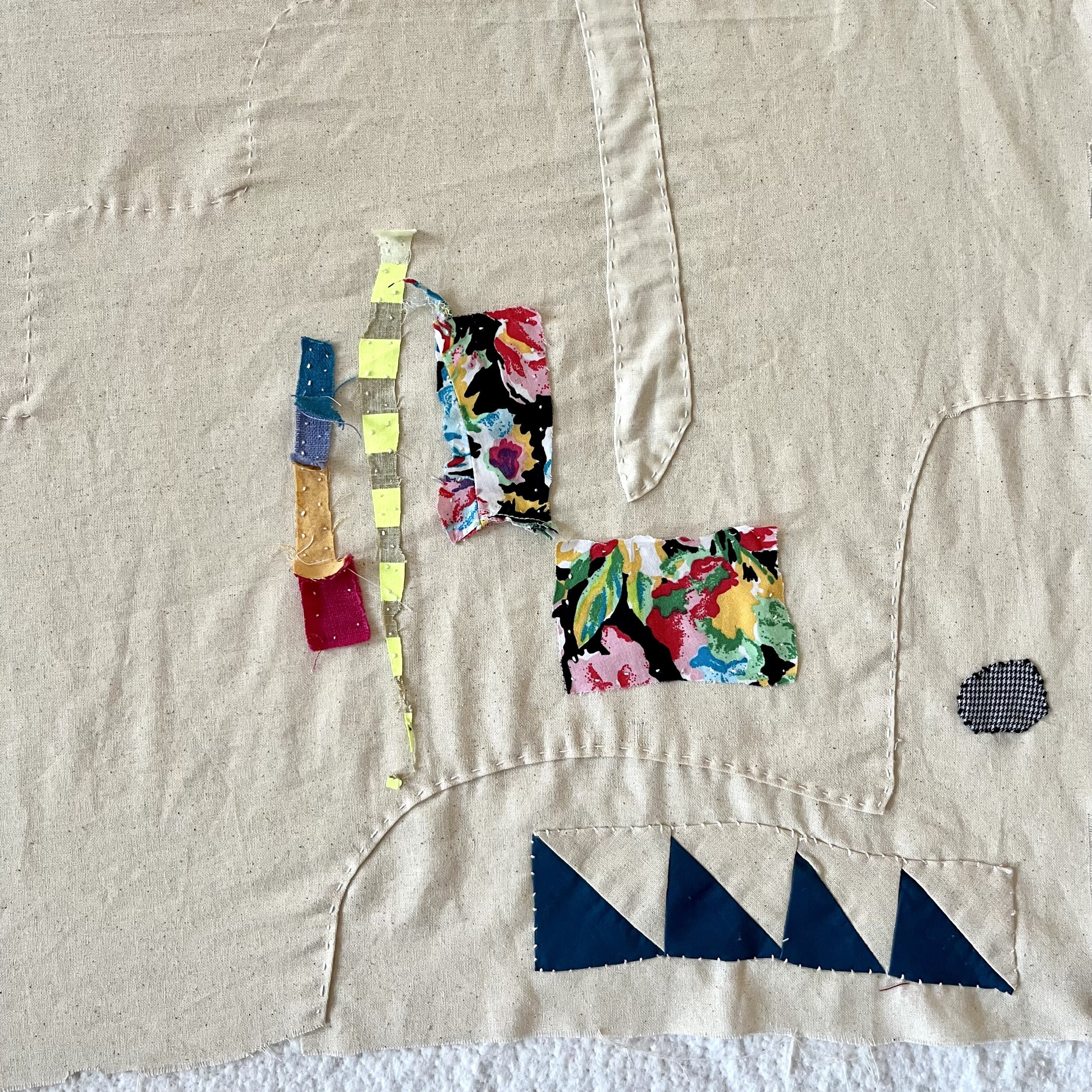 In 2024, I unknowingly started a tradition when I made an end-of-year recap quilt. I started with a simple scrap of muslin, shaped by all the pieces that had been cut out of it, and added a piece of a white linen dress. I then added my word of the year, PRESENT, along with some tiny details that summed up my year.