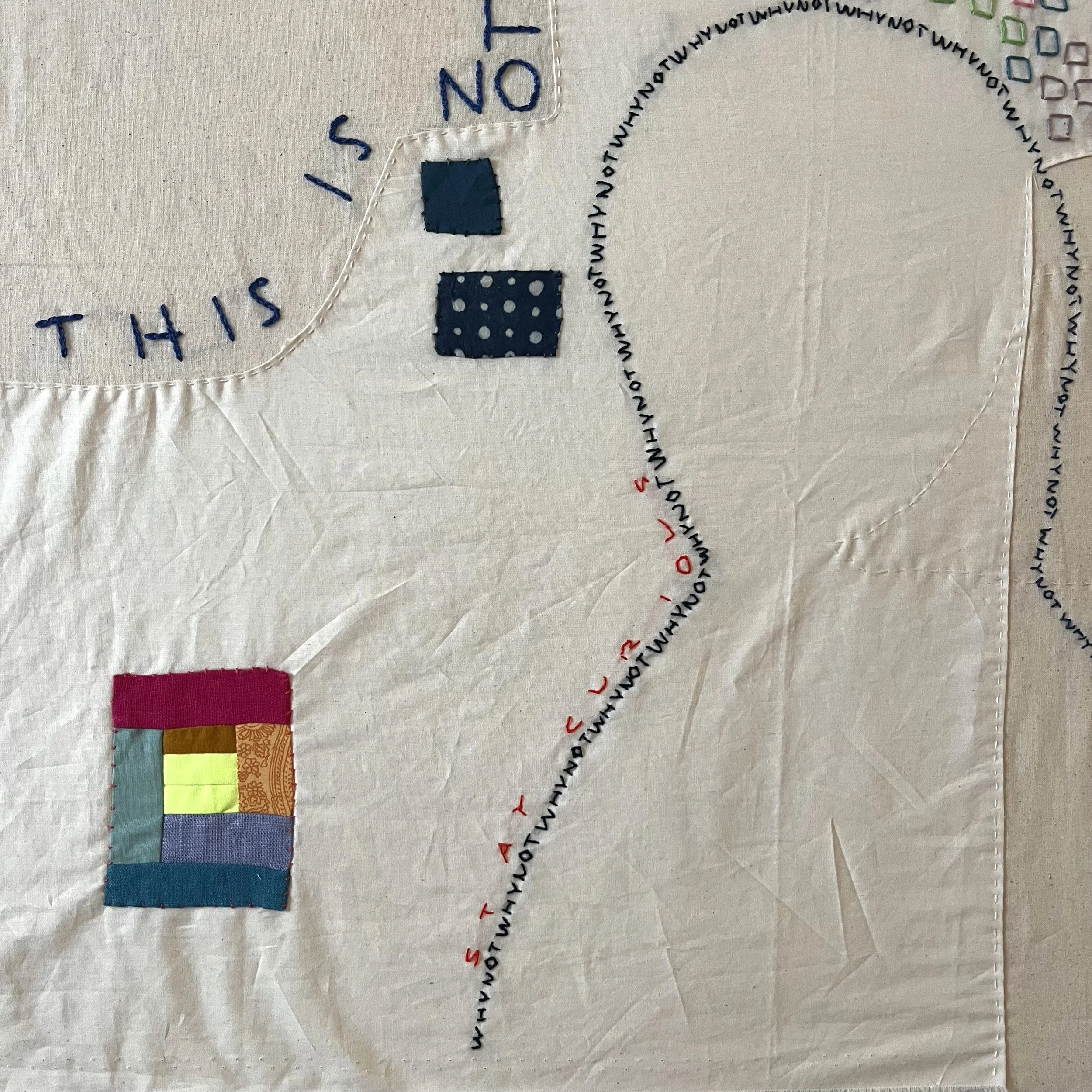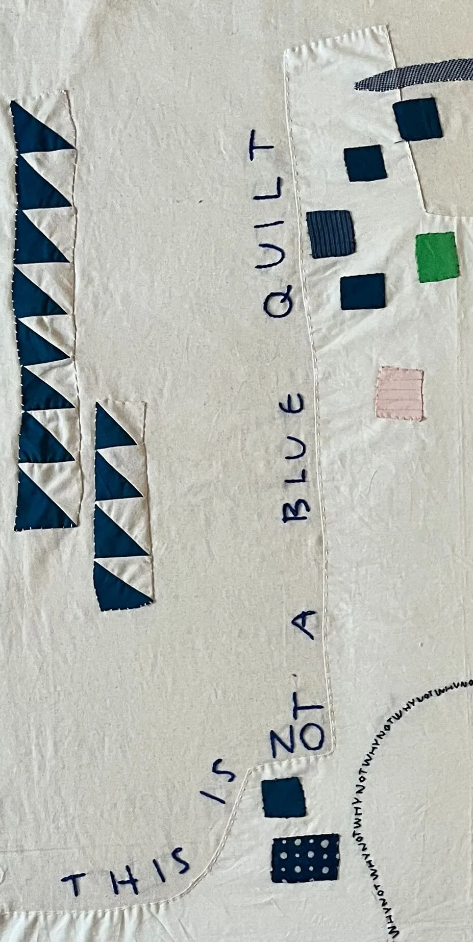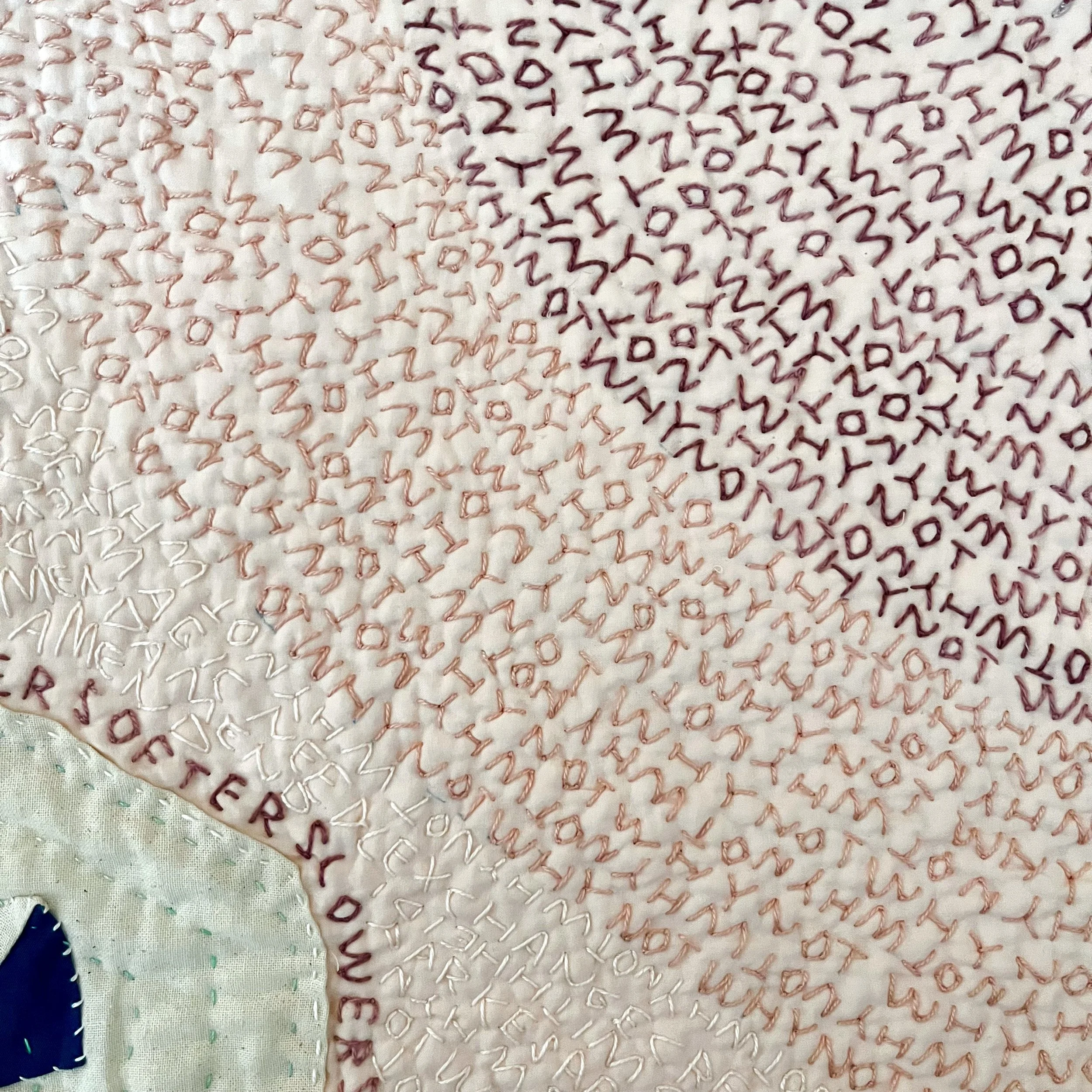And finally, I added a nod to Julie’s incredible color-blocked, dense quilting- adding my own spin by doing so with text.